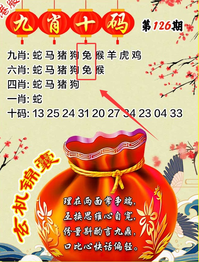 126期藏宝图:【胜妙重重惟祷祝】 浅解:祷祝,解吉肖蛇鸡龙马羊兔 综合解肖:蛇鸡龙马羊兔 |